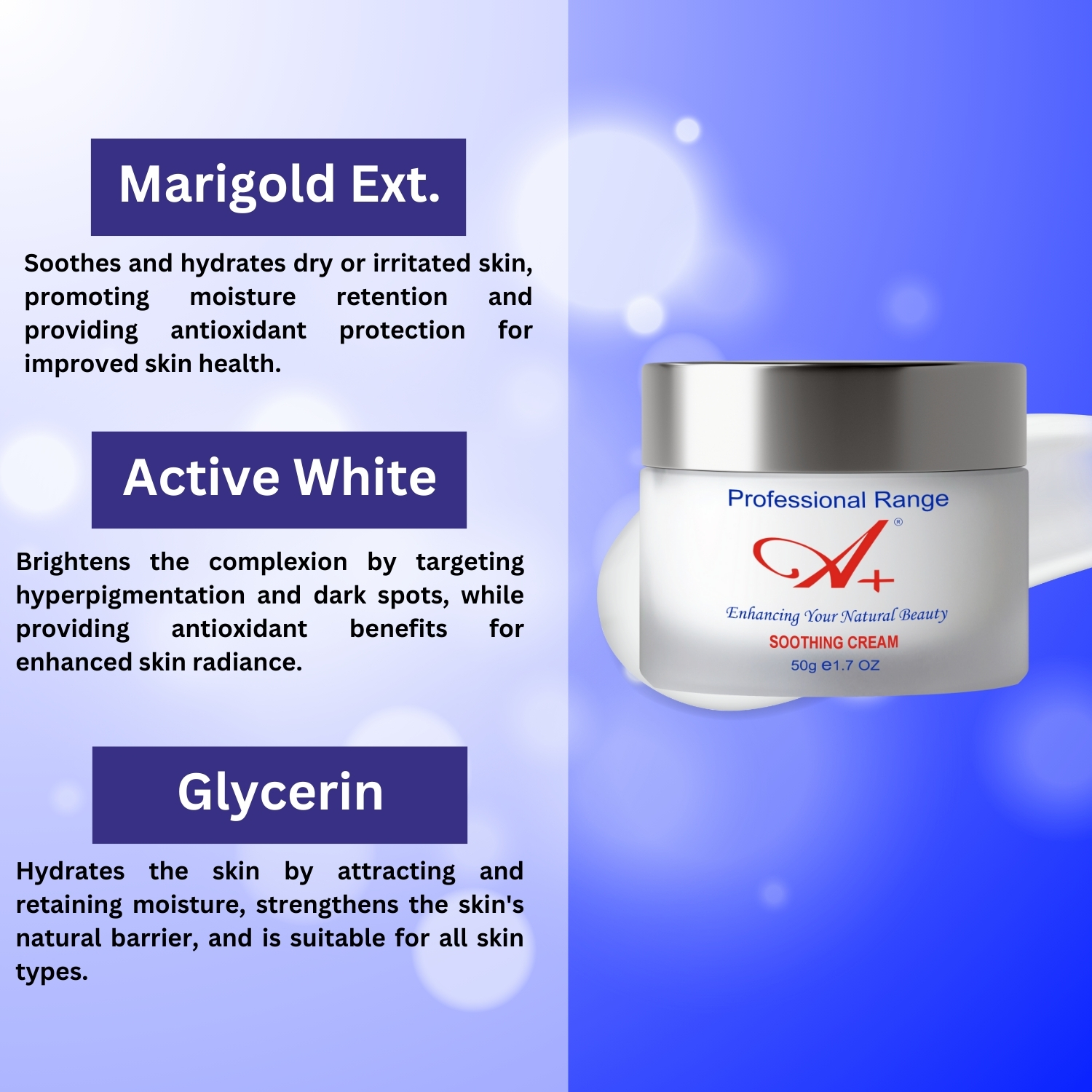 Experience soothing relief and radiant skin with our Soothing Cream, a luxurious solution suitable for normal to dry skin. Infused with advanced nanotechnology, this cream offers comprehensive skincare benefits to nourish and revitalize your complexion.