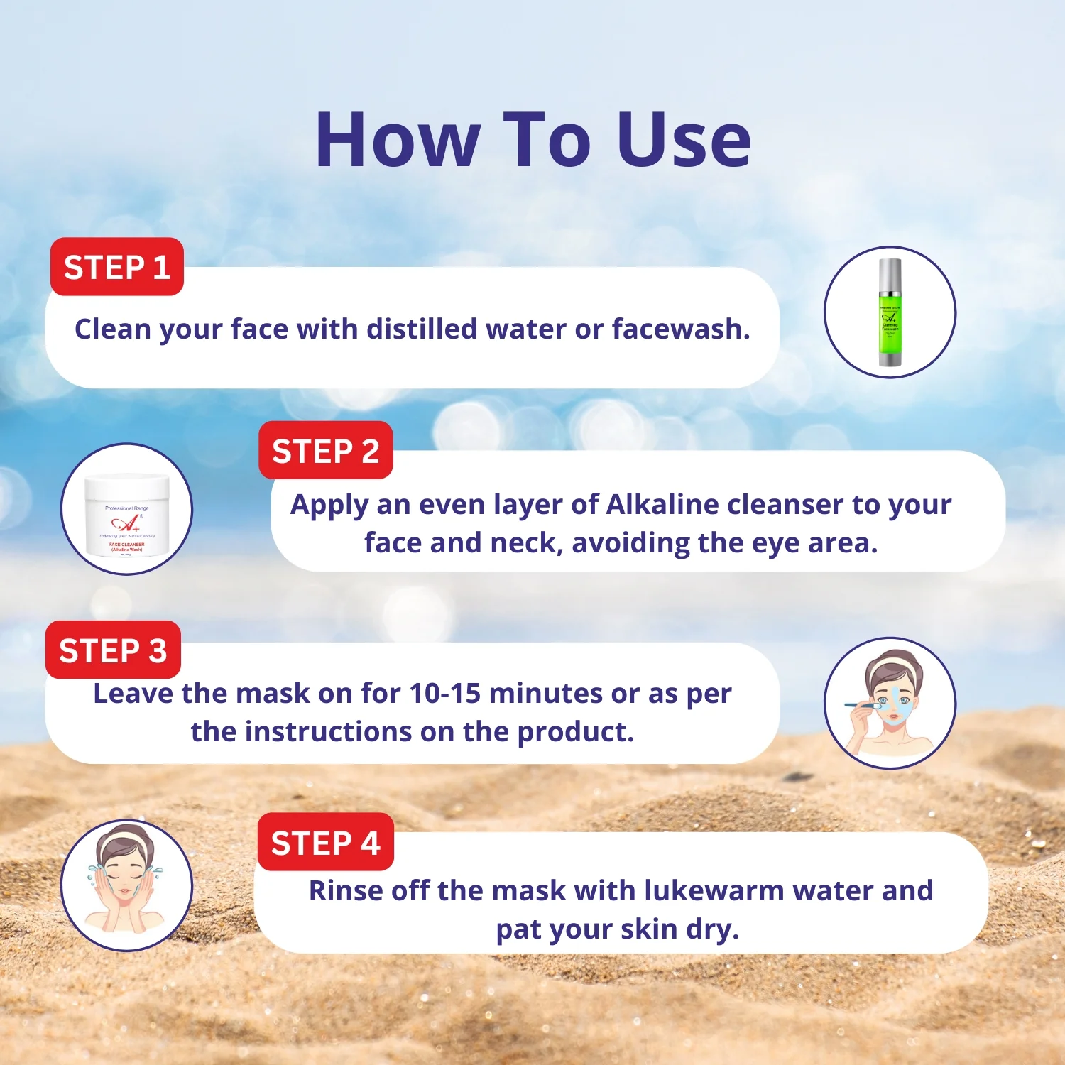 Experience the ultimate skin transformation with our Alkaline Cleanser, a powerful solution designed to address tan removal and acne control. This potent cleanser removes tan instantly, effectively tackling even the most stubborn discoloration. Infused with acne control properties, it combats breakouts and prevents future blemishes, leaving your skin clear and refreshed.