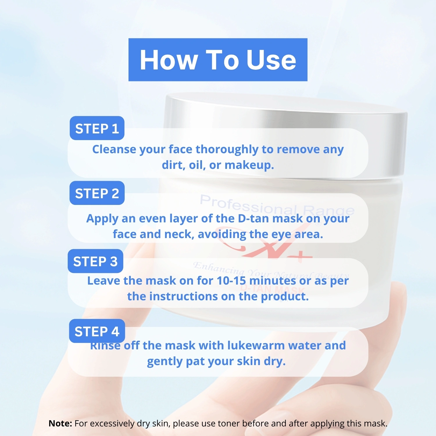 Unlike ordinary tan removal masks, our advanced formula deeply penetrates the skin, delivering long-lasting results with each application. Designed for normal to dry skin, it provides an instant radiance boost while keeping the skin hydrated and nourished.