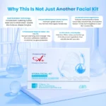 The kit has 6 professional steps – Cleanser, Exfoliator, Massage Gel, Rubber Mask, HA Sheet Mask, and Botanical Serum. Unlike other facials, it combines dual hydration for a longer-lasting glow.