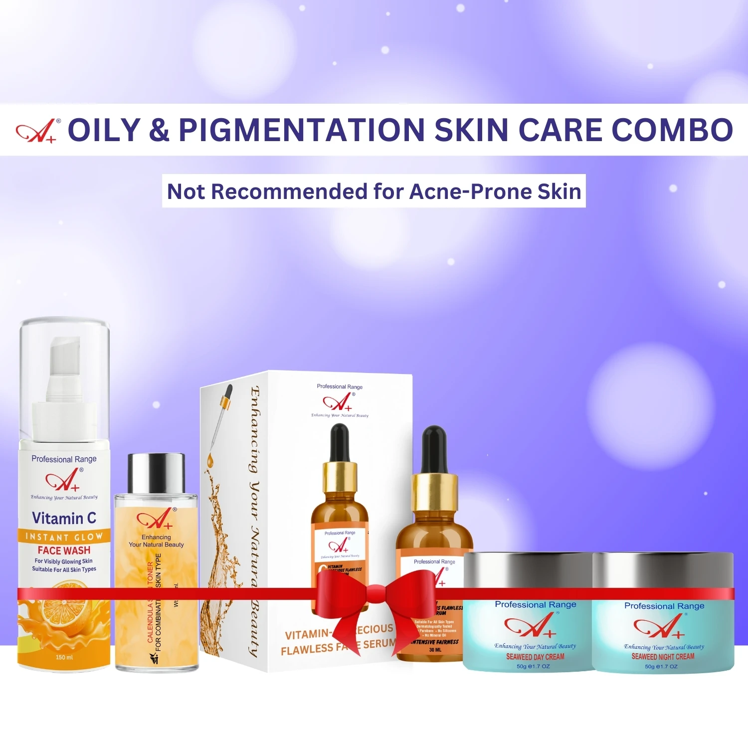 Achieve a radiant, even-toned complexion with the A+ Oily & Pigmentation Skincare Combo—your perfect solution for oil control and skin brightening.