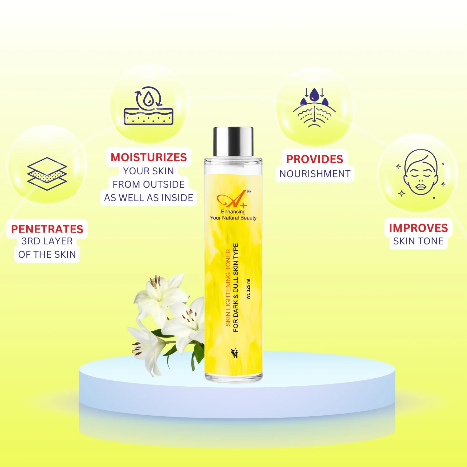 Upgrade your skincare routine with A+ Skin Lightening Toner and experience the transformation of your skin—brighter, healthier, and more radiant than ever!