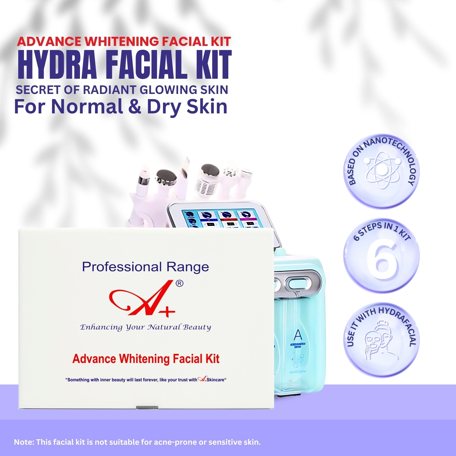 Formulated for normal to dry skin, this whitening facial kit works effectively to reduce dullness, pigmentation, and uneven skin tone. Inspired by advanced hydra-facial concepts, it provides intense hydration, deep cleansing, and long-lasting nourishment in a complete facial regimen. The result is soft, radiant, and healthier-looking skin after every session.