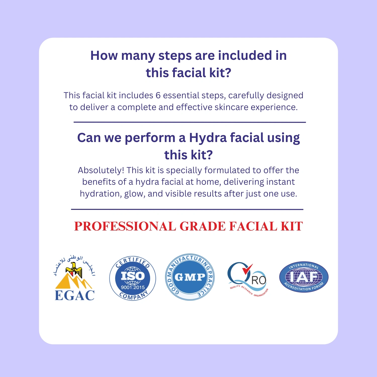 Powered by nanotechnology, this facial kit ensures deeper penetration of active ingredients, allowing the skin-brightening agents to work more effectively from within. Each step is carefully crafted to cleanse, exfoliate, nourish, soothe, and protect the skin, making it an ideal instant glow facial kit for professional salon treatments.