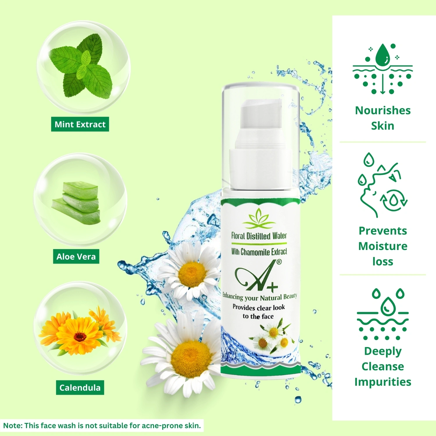 Refresh, hydrate, and calm your skin with our Floral Distilled Water with Chamomile Extract, a gentle face mist designed for sensitive skin. This lightweight, botanical-infused mist provides instant hydration while reducing redness and irritation. Enriched with Chamomile, Mint, Rose, Jasmine, Aloe Vera, and Calendula, it delivers a cooling sensation that soothes and revitalizes, leaving your skin soft, dewy, and refreshed.