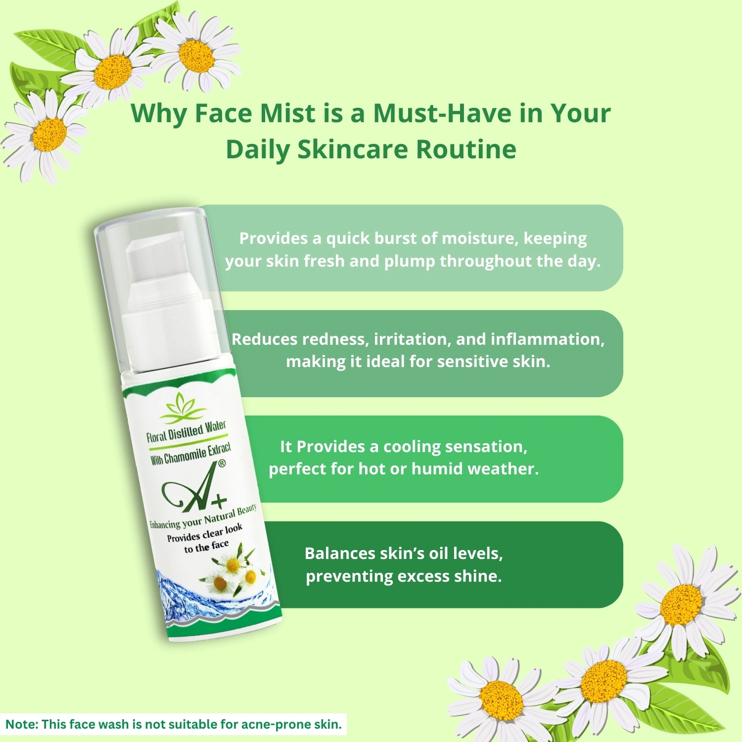 Give your skin the care it deserves with Floral Distilled Water with Chamomile Extract—the ultimate hydrating and soothing face mist for a refreshed, glowing, and healthy complexion!