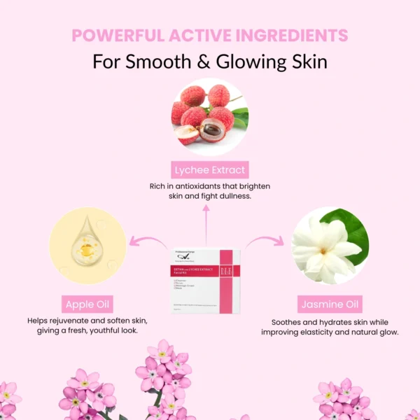 - Step 3 – Massage Cream: Massage the Lychee Extract Massage Cream for 15 minutes to boost blood circulation and hydration.