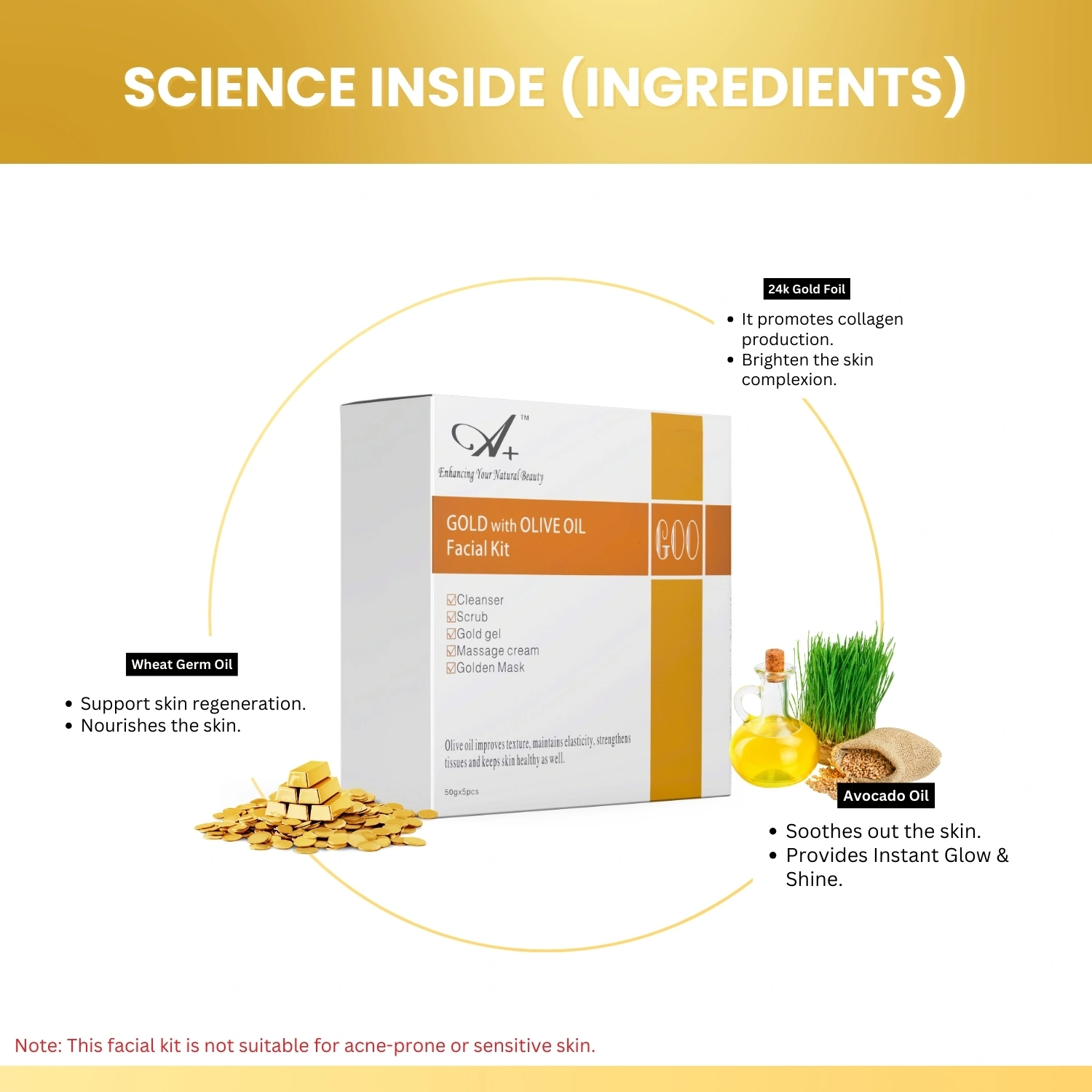 A+ Gold with Olive Oil Facial Kit, 5 Steps – 250gm
