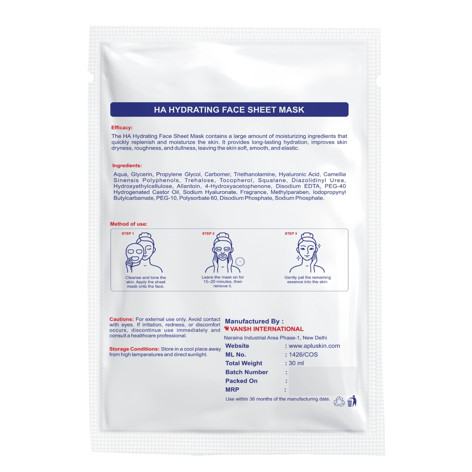 A+ HA Hydrating Sheet Mask | Bio Collagen Face Mask for Overnight Pigmentation Removal – 30 ml