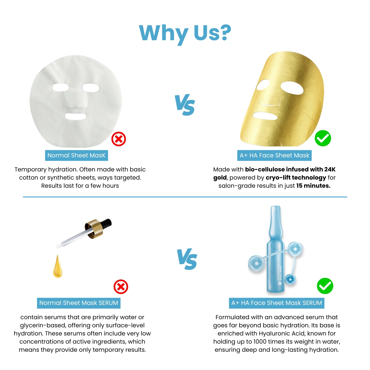 A+ HA Hydrating Sheet Mask | The Ultimate Bio Collagen Face Mask for Overnight Pigmentation Removal