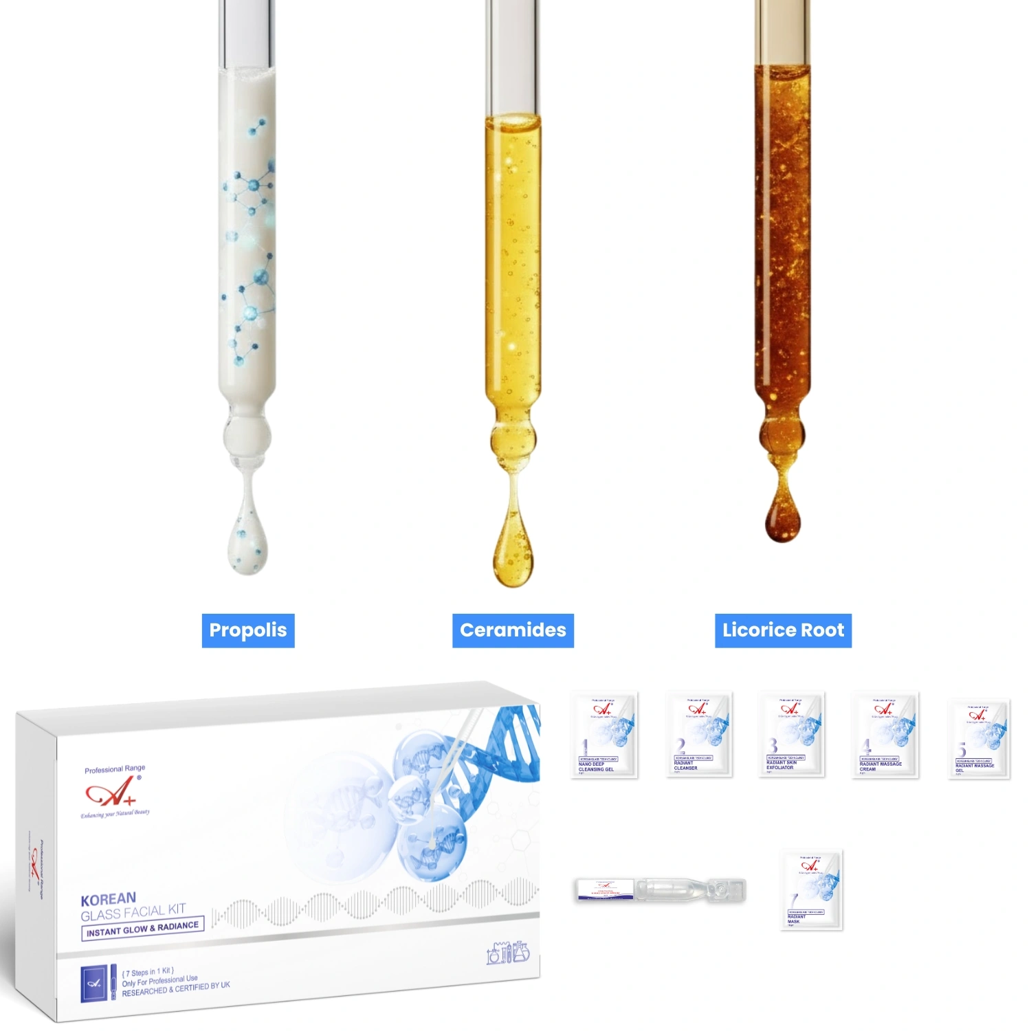 A+ Korean Glass Monodose Facial Kit | Single Use, 7 Steps – 145 gm