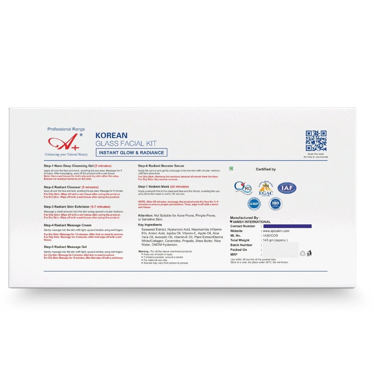 A+ KOREAN GLASS SKIN FACIAL KIT
