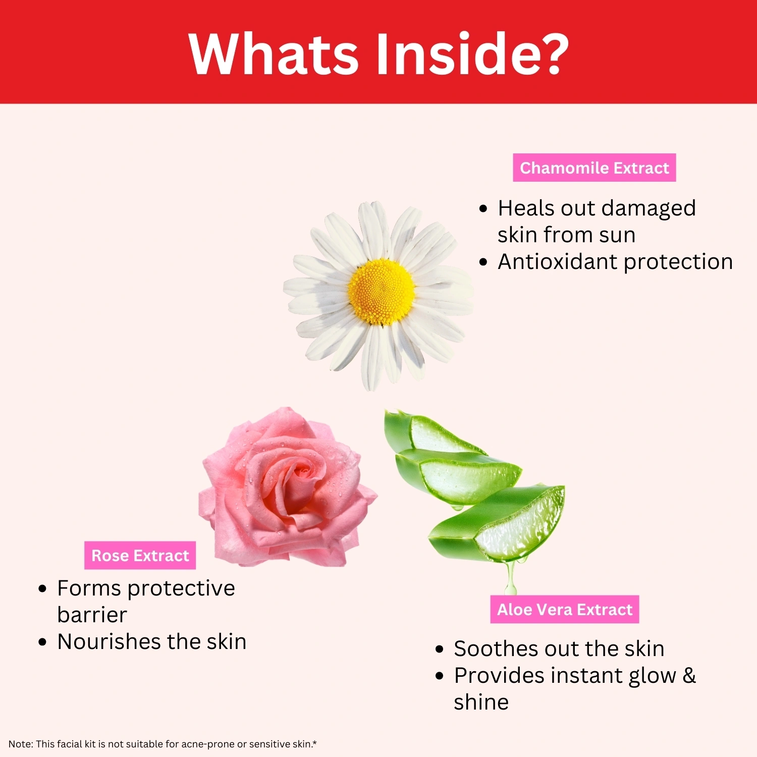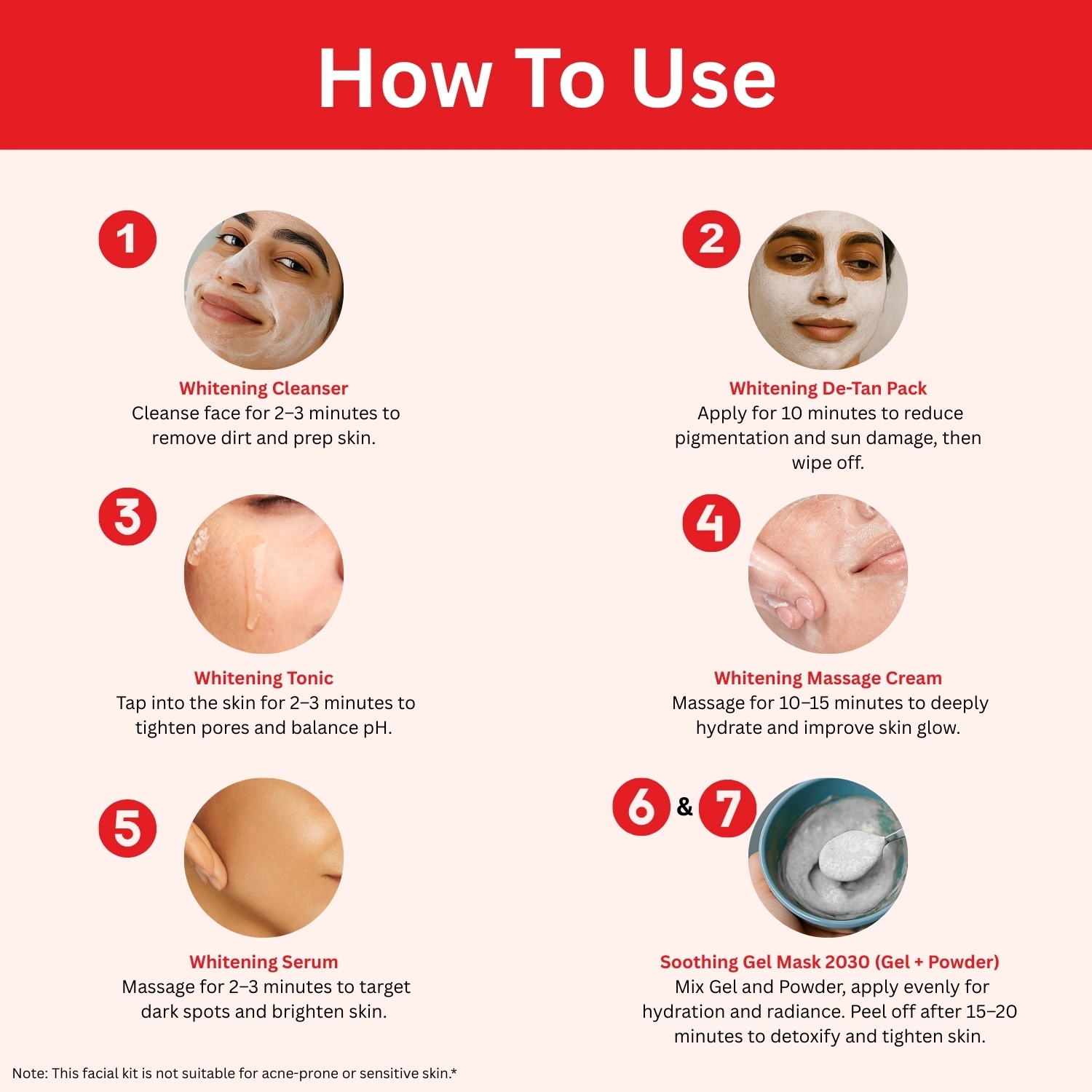 ⚠️ Note: Not suitable for Oily and Acne Skin Types. For best results, avoid direct sunlight immediately after the facial and always use sunscreen.