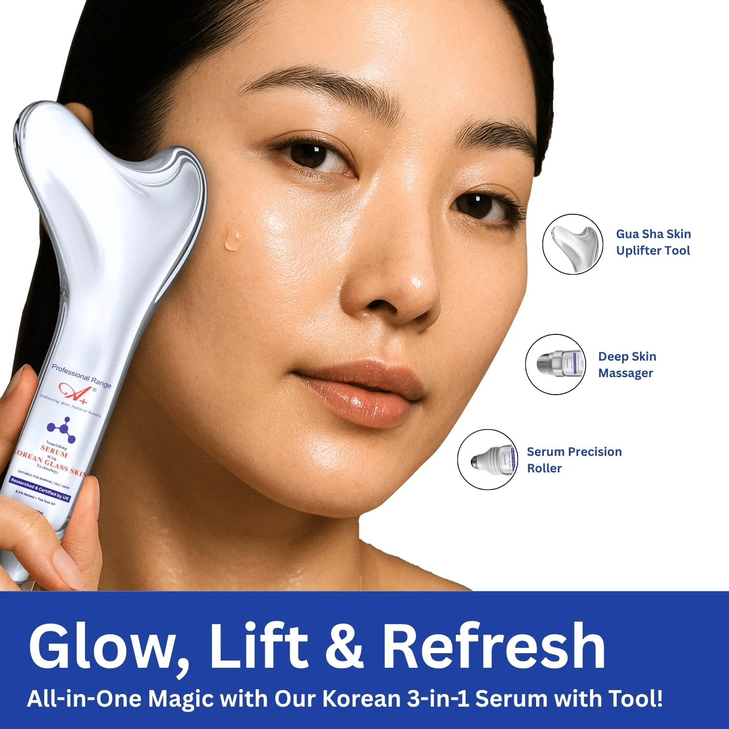 A+ Korean Serum for Oily Skin With 3 Advanced Skincare Tools – Your Complete Korean Glass Skin Glow System