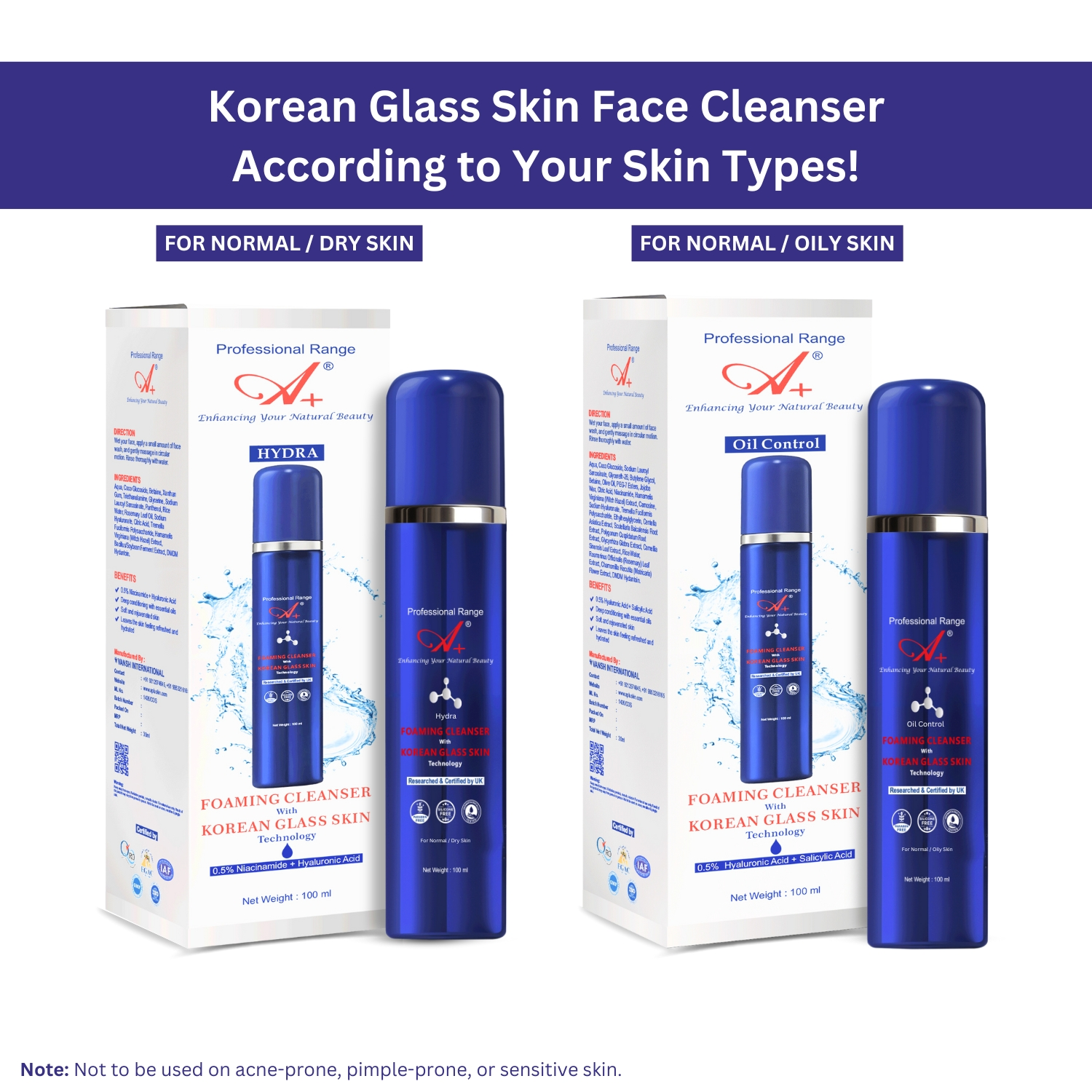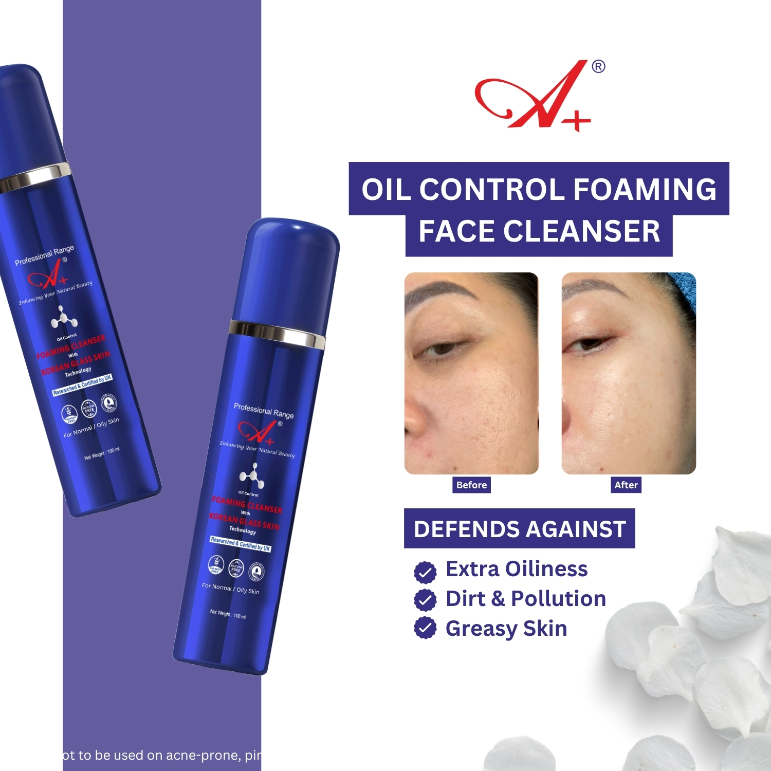 A+ Oil Control Foaming Cleanser With Korean Glass Skin Technology (Normal/Oily Skin) – 100 ml