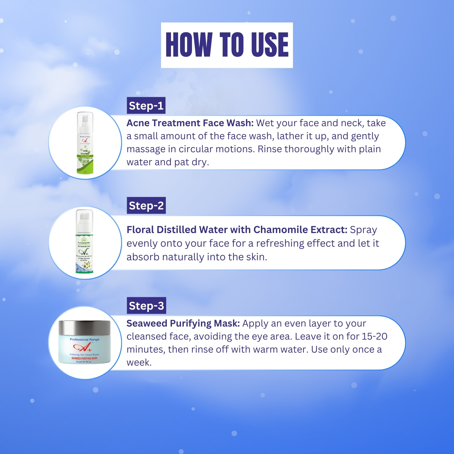 The A+ Sensitive Acne Skin Combo is a dermatologist-formulated skincare set designed to effectively treat acne while being gentle on sensitive skin. This 3-step routine helps cleanse, soothe, and balance the skin without causing irritation or dryness.