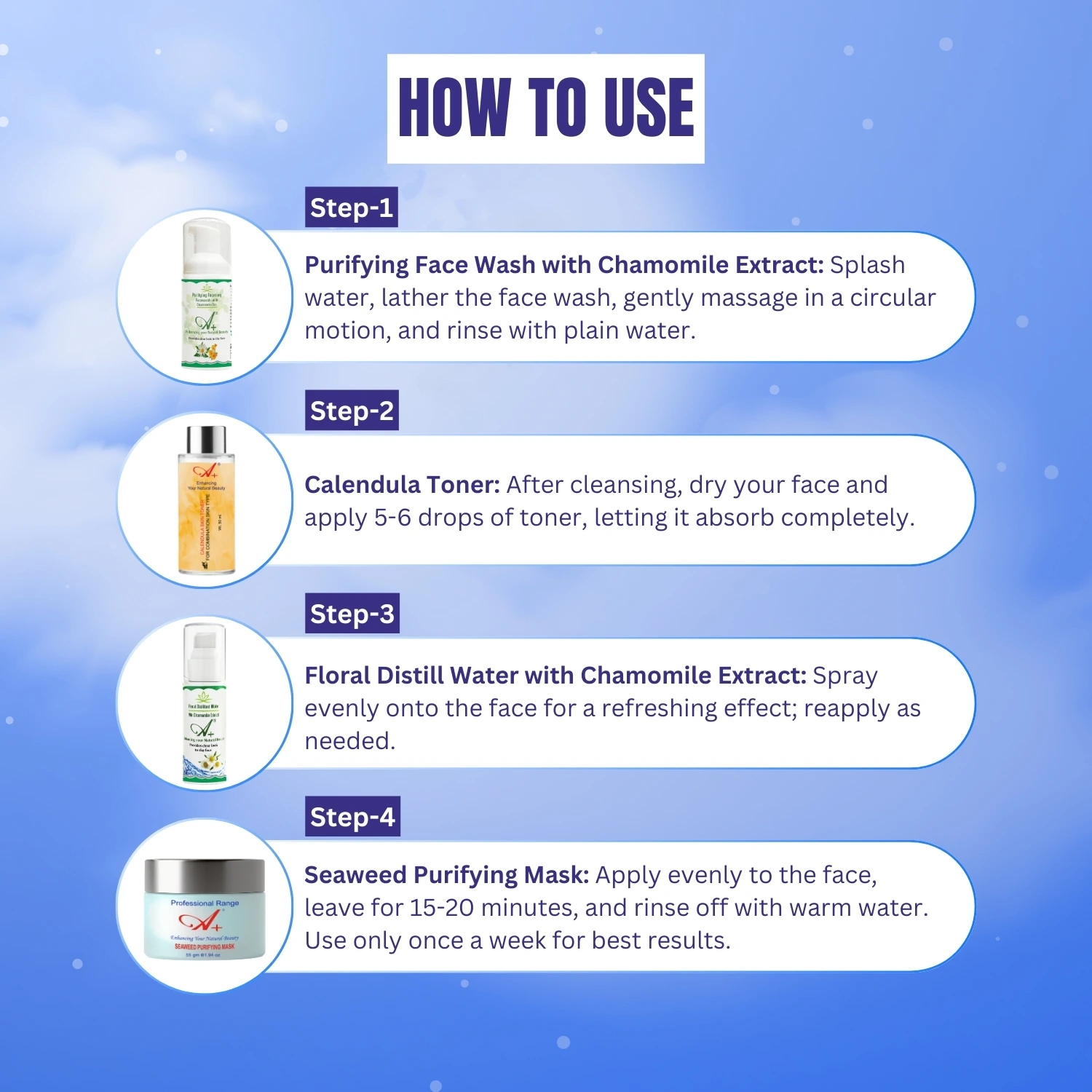 Designed for both men and women, the A+ Sensitive & Oily Skincare Combo promotes long-term skin health and clarity, ensuring you maintain a fresh and luminous appearance every day.