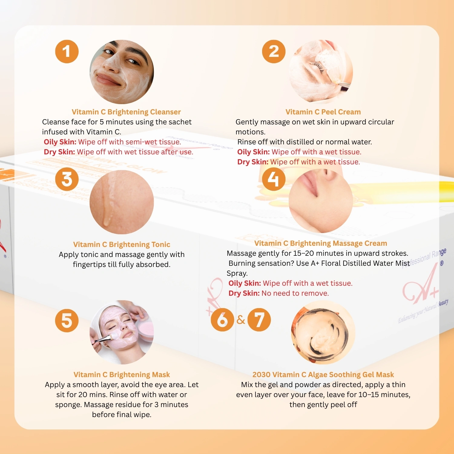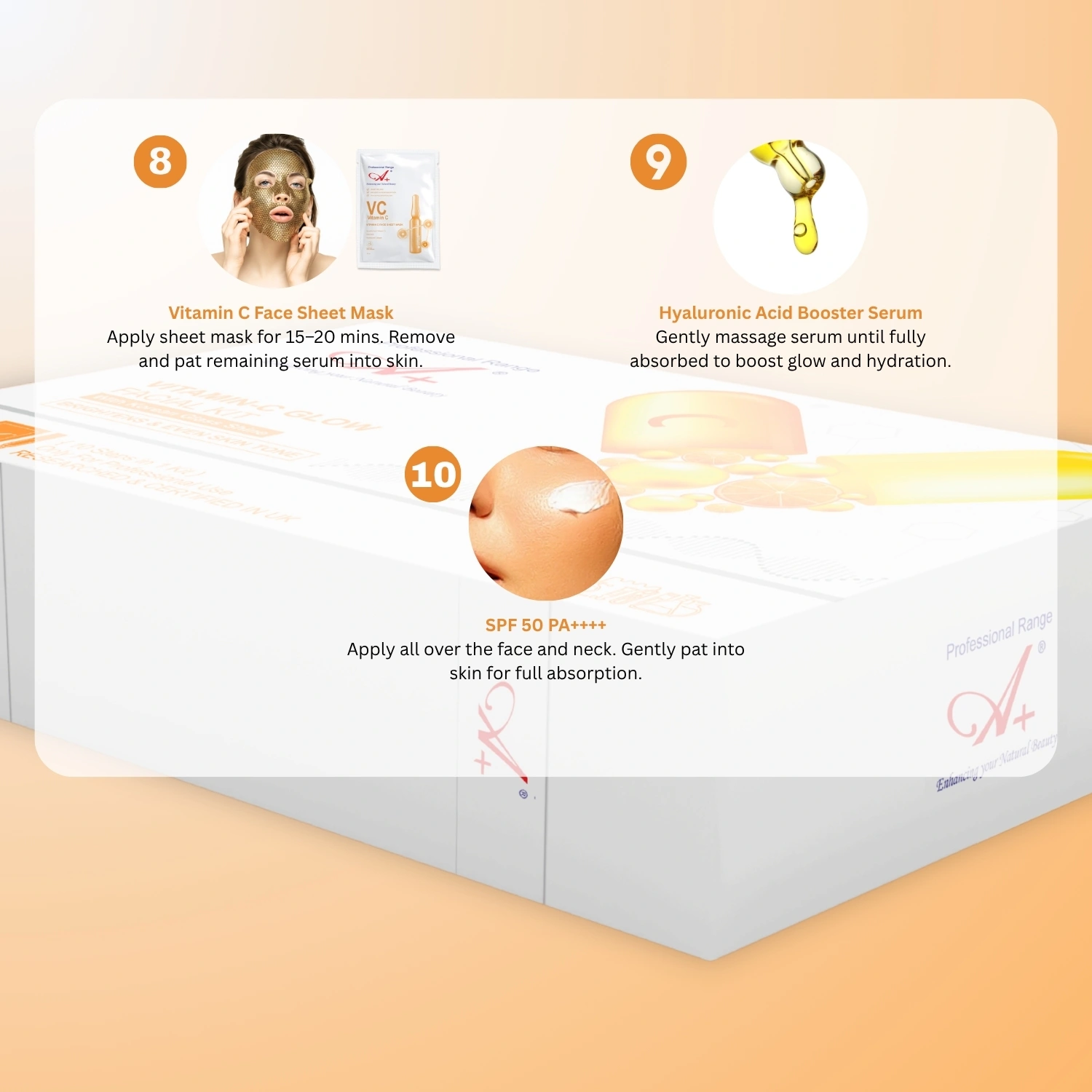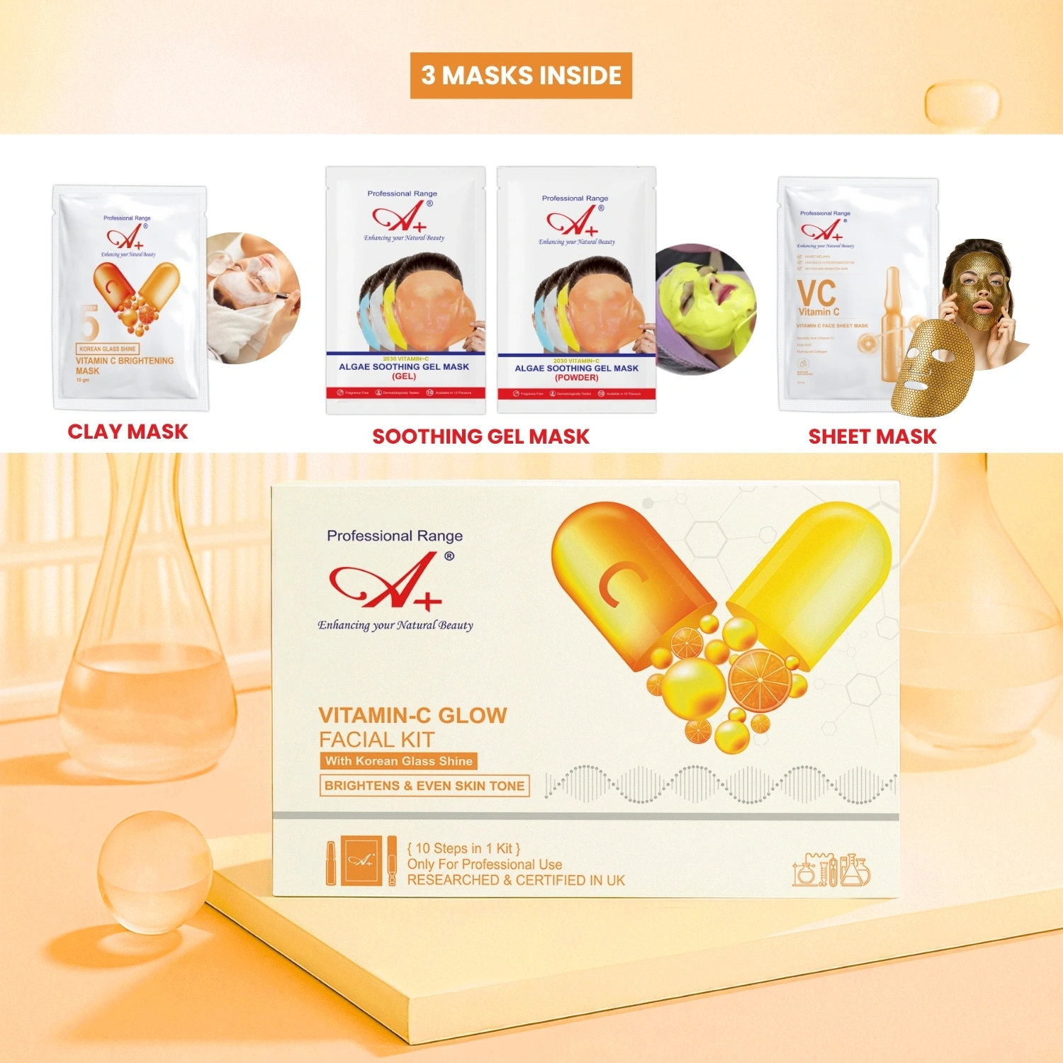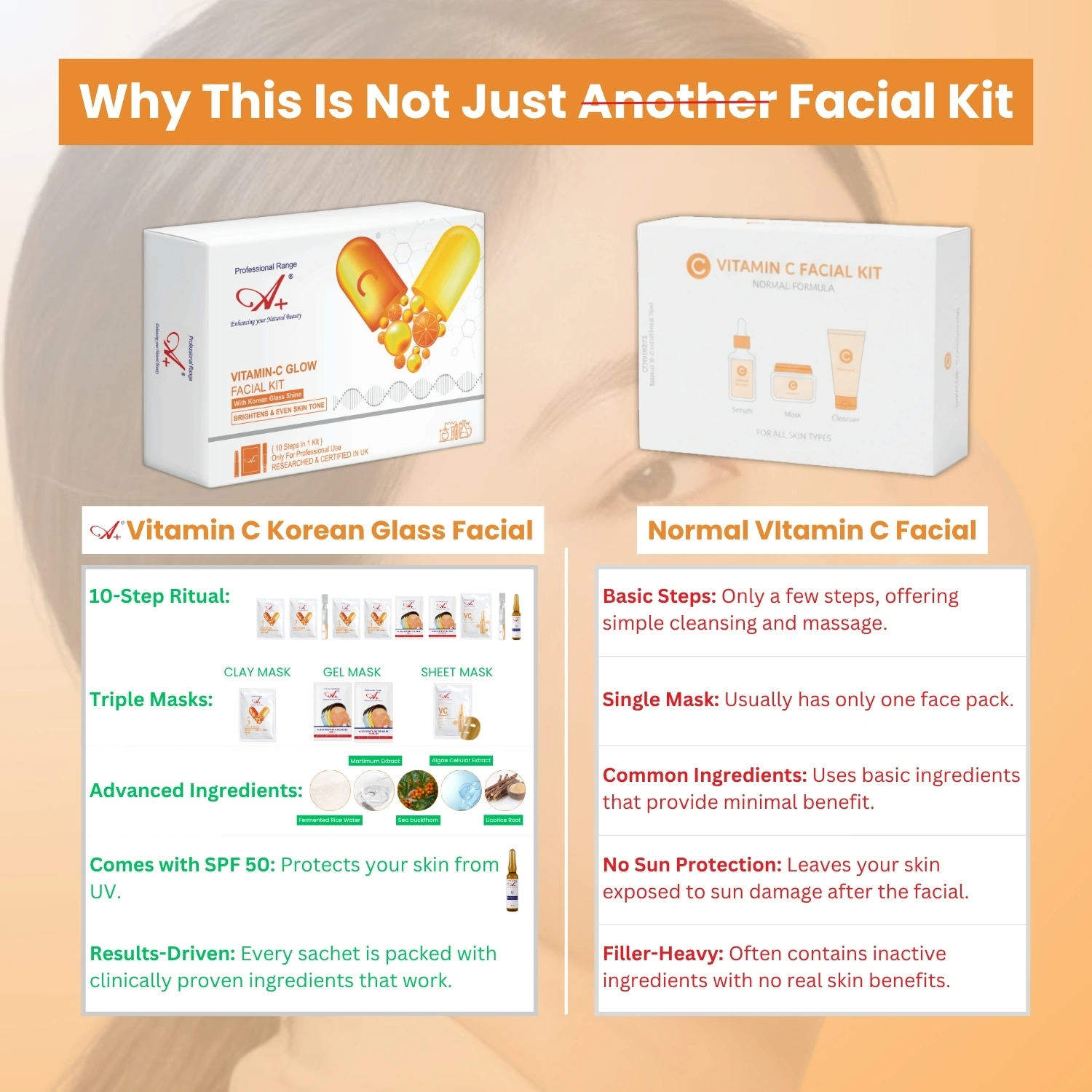 A+ Vitamin C Korean Glass Shine Facial Kit – 10-Step Advanced Brightening Facial for Radiant, Even-Toned Skin