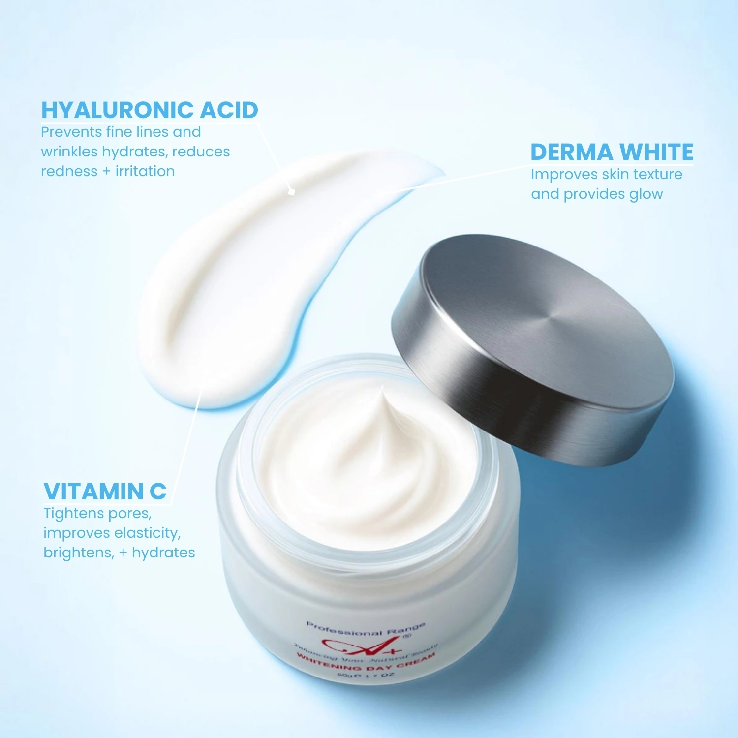 [saswp_tiny_multiple_faq headline-0=”h2″ question-0=”Who should use the A+ Whitening Day Cream, and why is SPF 50 included?” answer-0=”This day cream is specifically formulated for normal to dry skin types that are looking for a brighter, more even complexion. The SPF 50 is crucial because it provides powerful protection against environmental stressors, like damaging UV rays. Since sun exposure is the primary cause of dark spots and hyperpigmentation, the high SPF ensures the whitening and brightening ingredients can work effectively without sun interference.” image-0=”” headline-1=”h2″ question-1=”How does this cream help with brightening and uneven skin tone?” answer-1=”This day cream actively works to brighten and even out skin tone. It’s packed with ingredients designed to reduce the appearance of dark spots and hyperpigmentation. With consistent use, you’ll see a reduction in discoloration, leading to a much more even and radiant complexion.” image-1=”” headline-2=”h2″ question-2=”Will this cream keep my normal or dry skin hydrated throughout the day?” answer-2=”Absolutely! We know that normal to dry skin needs constant moisture. Our formula is designed not just to brighten, but also to be strongly hydrating and moisturizing. It locks in essential moisture, keeping your skin comfortable, supple, and preventing the dryness that can often emphasize fine lines and uneven texture.” image-2=”” headline-3=”h2″ question-3=”Does this day cream offer anti-aging benefits?” answer-3=”Yes, it does! The A+ Whitening Day Cream contains nourishing ingredients like vitamins and antioxidants that work to stimulate collagen production. Increased collagen helps make your skin firmer and more youthful-looking over time, providing both tone correction and anti-aging care in one step.” image-3=”” headline-4=”h2″ question-4=”How does this cream protect against pollution and free radicals?” answer-4=”Beyond the SPF 50, our formula creates an additional layer of protection against daily environmental stressors, including pollution and free radicals. These external factors can accelerate skin damage and hyperpigmentation. By using this cream daily, you help defend your skin against these damaging elements, keeping your skin healthy and supporting its brightness.” image-4=”” count=”5″ html=”true”]