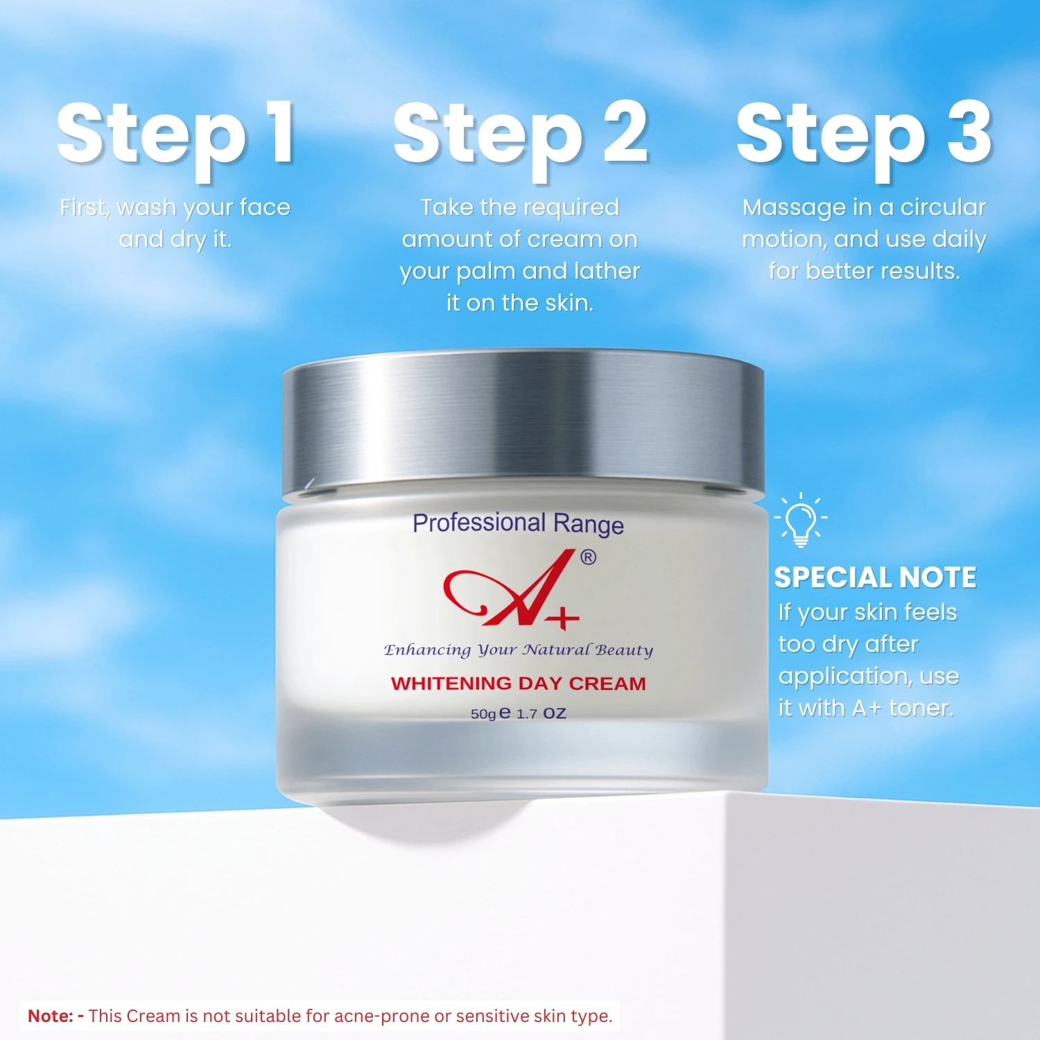 Note: Not suitable for sensitive, acne-prone, or pimple-prone skin.