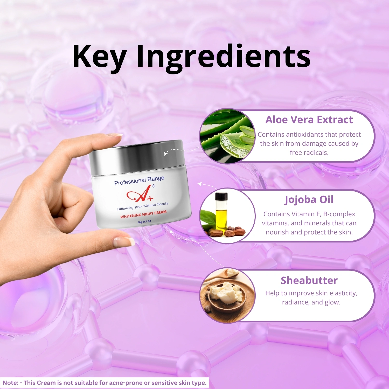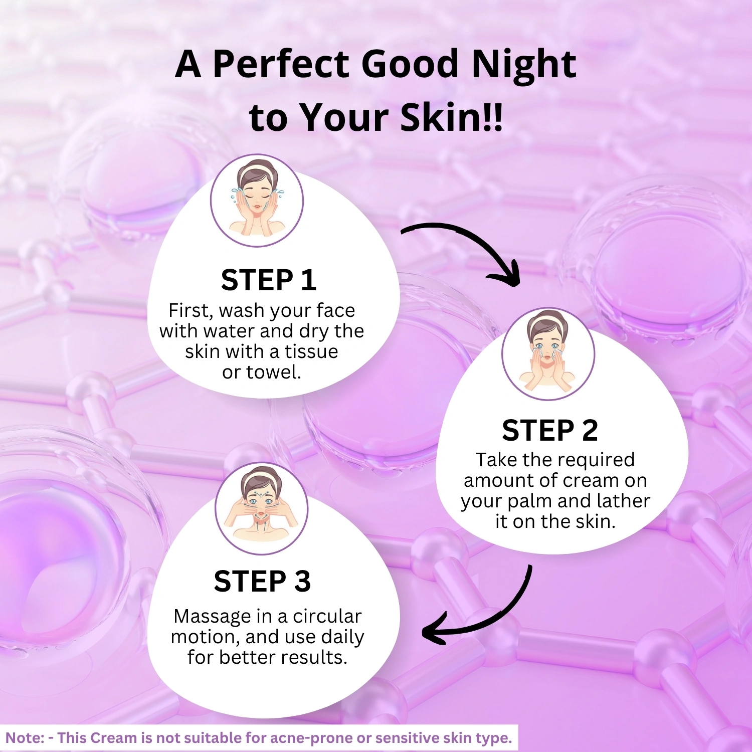 Note: Not suitable for sensitive, acne, or pimple-prone skin.
